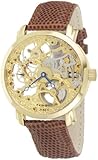 - Men's timepiece features a gold plated stainless steel case and see through gold skeleton dial with screw-in exhibition case back